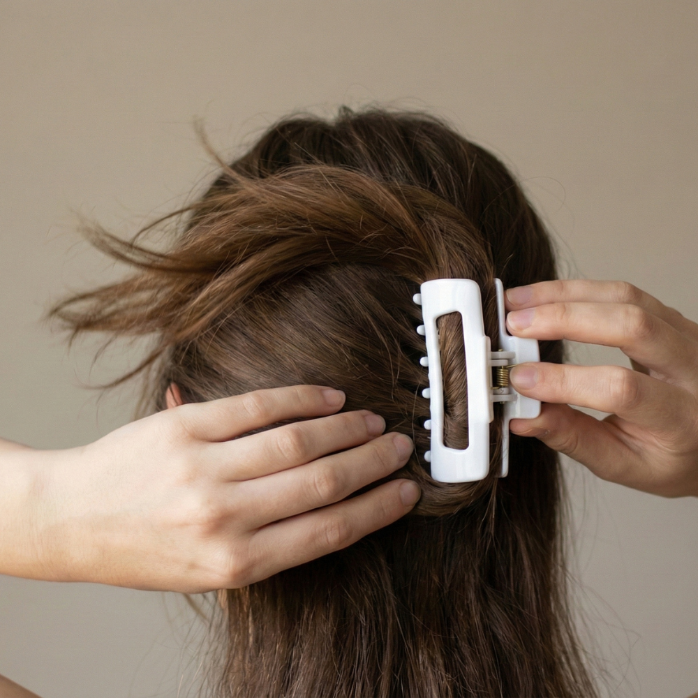 Unsere Haarklammer wurde so entwickelt, dass sie sich jedem Haartyp anpasst. Die flexible, ausgewogene Form sorgt für sicheren Halt, ohne zu drücken oder zu ziehen. Egal ob feines, dickes, glattes oder lockiges Haar – die Spannung verteilt sich gleichmäßig und hält deine Frisur zuverlässig den ganzen Tag. Einfach, komfortabel und für jedes Haar gemacht.